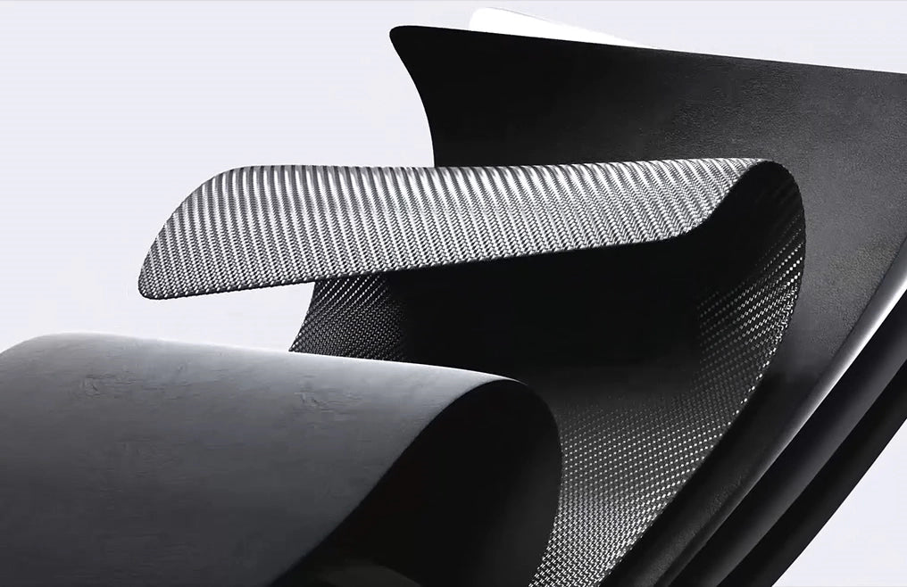 The durable carbon fiber textile is crafted in a special weaving technique to create a unique texture that feels soft to the touch.